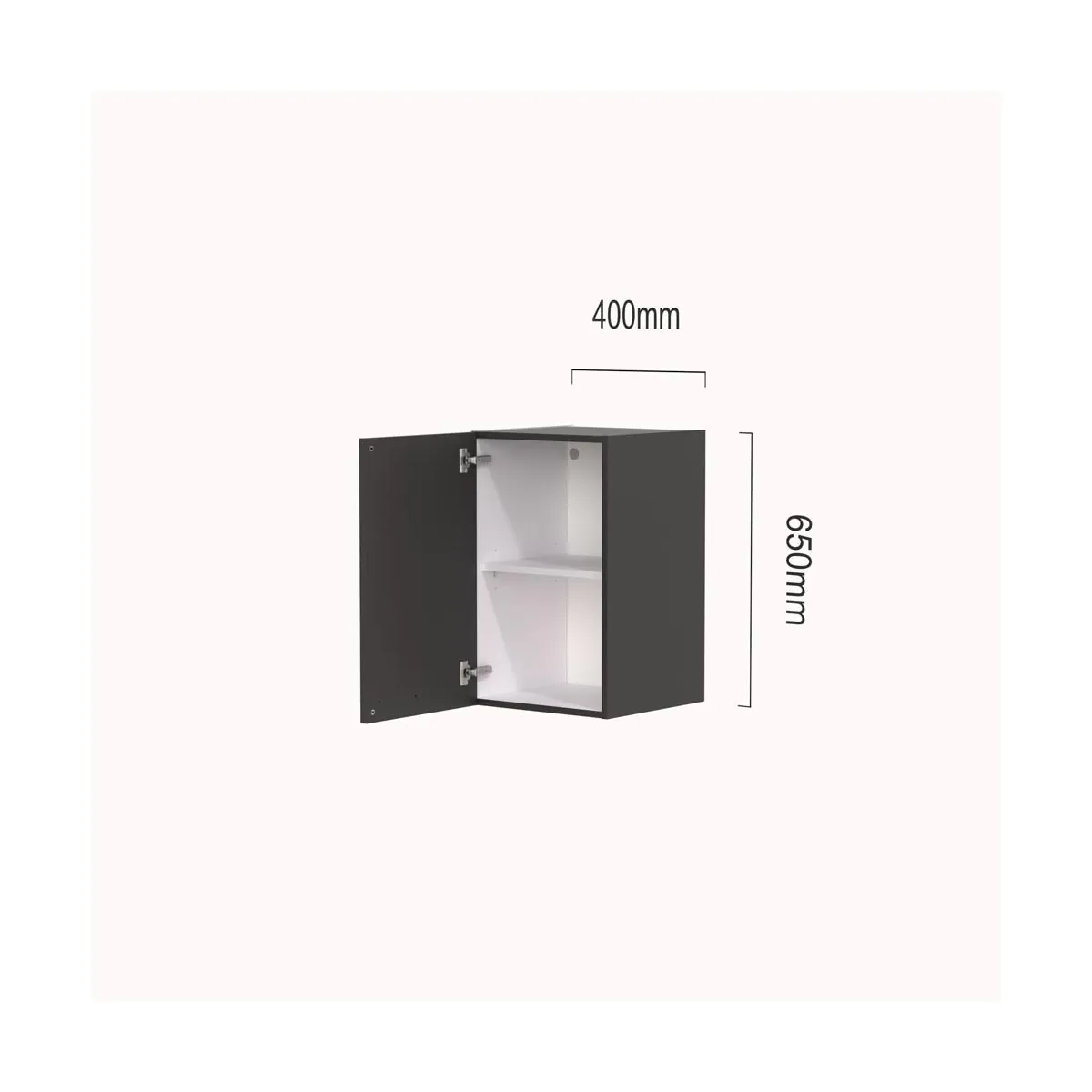 Deze bovenkast heeft een draaideur voorzien van luxe 107° metalen cliptop scharnieren met rechte steun.