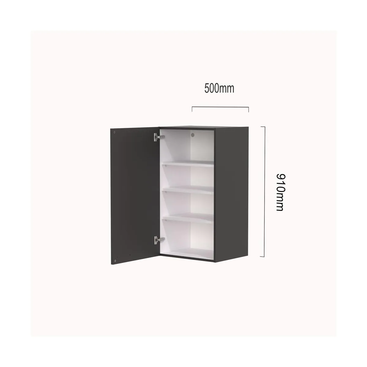 Deze bovenkast heeft een draaideur voorzien van luxe 107° metalen cliptop scharnieren met rechte steun.