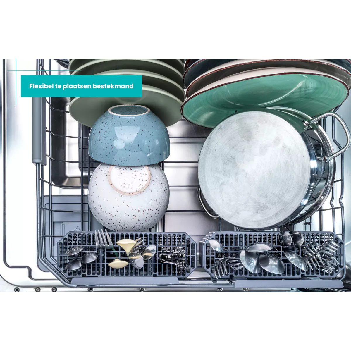 Het is een duurzame, stille en krachtige geïntegreerde vaatwasser met ruimte voor 14 couverts. Dankzij de energiezuinige koolborstelloze motor is hij niet alleen stil, maar ook efficiënt in verbruik. In de speciale nachtmodus daalt het geluidsniveau tot slechts 40 dB, ideaal voor open of kleinere ruimtes.