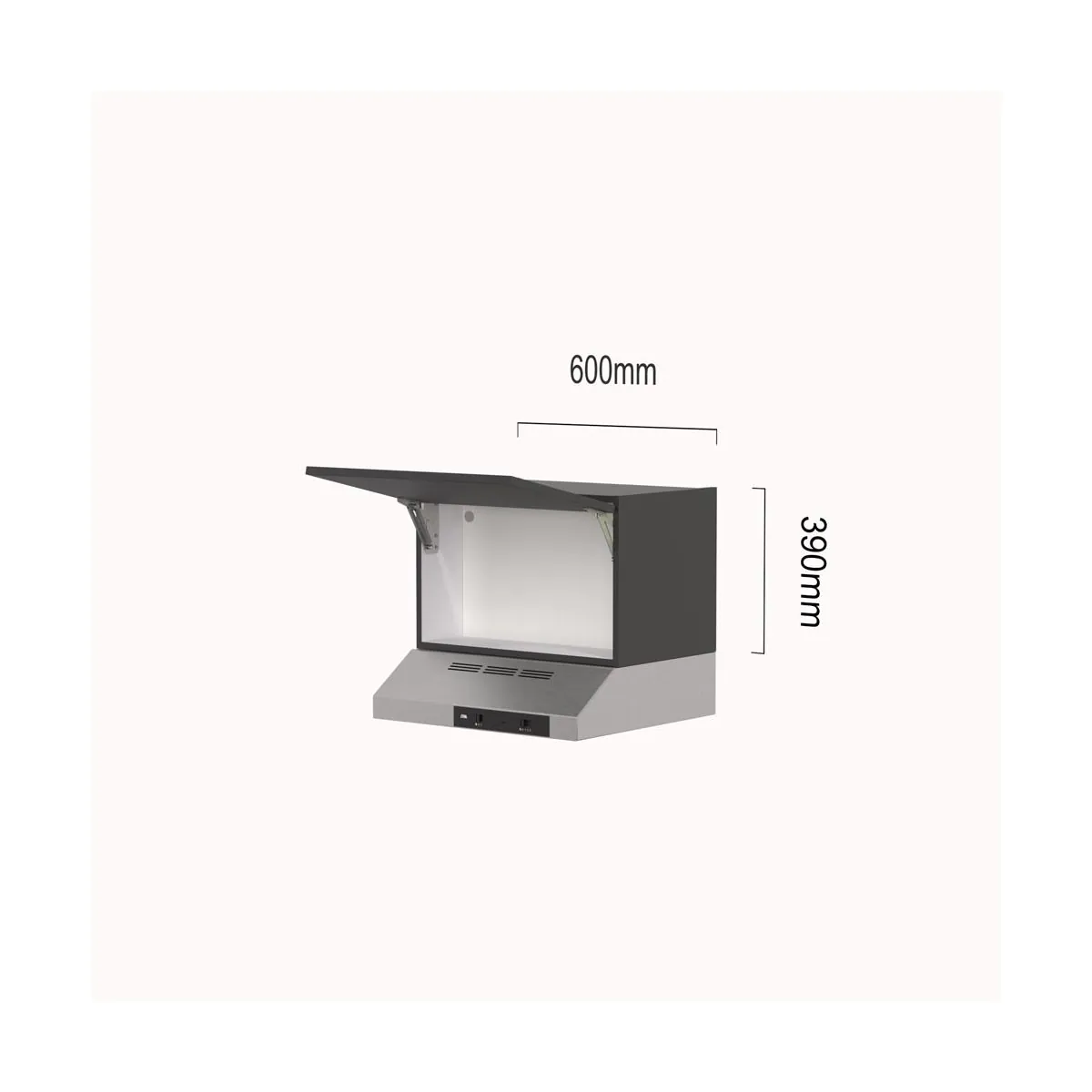 Deze klepkast is voorzien van luxe klepscharnier met softmotion demping voor een geruisloze sluiting. De kast heeft een diepe ruimte achter de kast die ruimte biedt voor de afvoerpijp van uw afzuiging.